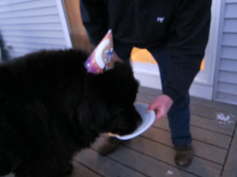 I need a bit of a break from time consuming recipes and posts, which means today you’re finding out what Chumley, my mom’s giant Newfoundland with wheat allergies, had for his 9th birthday.
