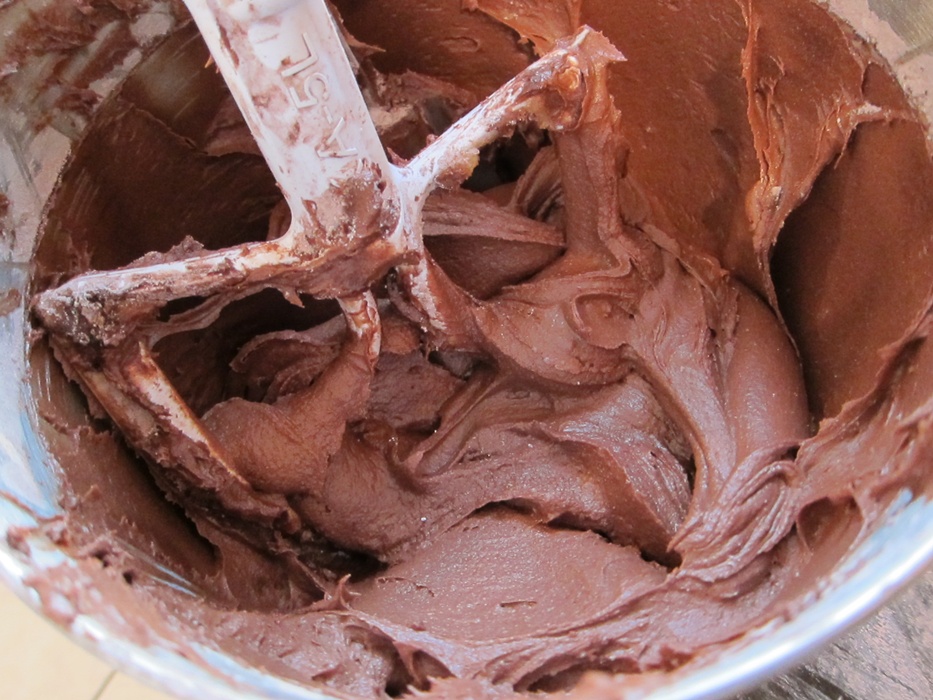 Using your mixer’s paddle attachment, beat together the butter and both sugars on medium speed until light and fluffy. Add the egg mixture on low and beat until just incorporated. Add the chocolate and beat in on low until combined, then carefully add the dry goods and beat until just combined.