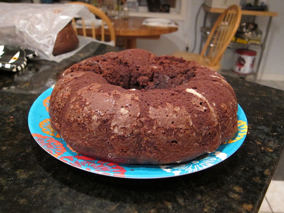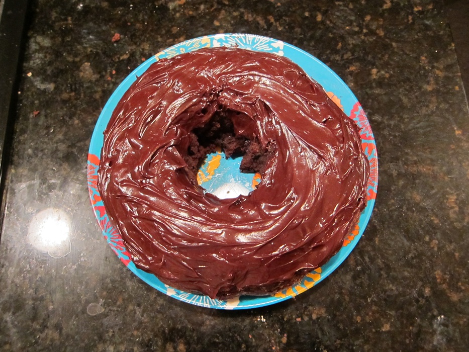 I have a whole bunch of bookmarked recipes that I’ve been putting off for months/years because they require Dutch processed cocoa powder, and I couldn’t be bothered to get it. But that changed recently (immediately before those truffle cookies…) and I’m getting to things I’ve been reading about for ages! This cake was worth the wait. Even the batter is super delicious, and then it does cool things when it bakes. Instead of being just a solid fluffy chocolate bundt, you get, as the name says, a tunnel of gooey fudgeyness evenly throughout the whole ring of the cake. Add a chocolate topping, and it’s pretty irresistible!