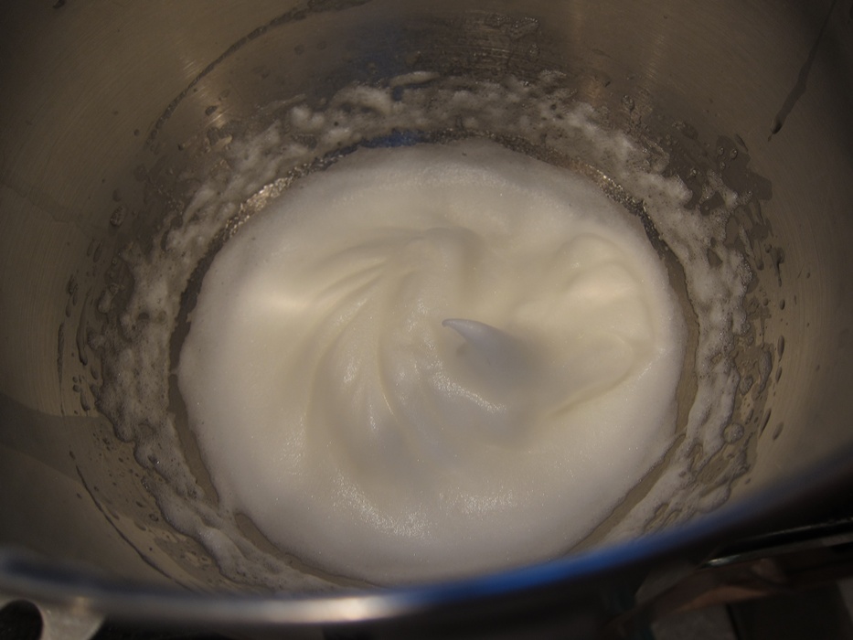 Beat in the vanilla, then add the sugar 1 tablespoon at a time, still on high speed. Continue to beat until stiff and glossy.