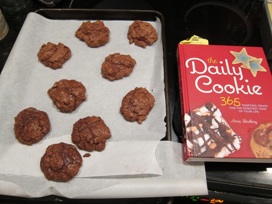 Drop the batter on the lined sheet in heaping teaspoons 2 1/2″ apart. Apparently the book and I have different opinions on “heaping teaspoon,” as it gets 16 cookies and I got 9. If you have 16, use a second pan.