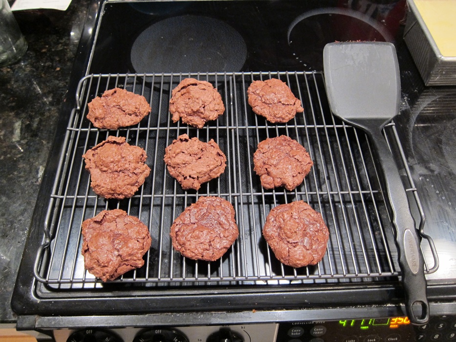 Bake 8-10 minutes, one pan at a time. Because mine were apparently nearly twice the intended size, I cooked mine an eleventh minute. Let cool several minutes on the pan, then transfer to a wire rack to cool completely.