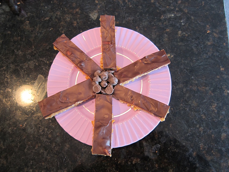 Chill one final time, at least 5 minutes in the freezer, or 10-15 in the fridge, until you can touch the chocolate without it coming off on your hands, but before it becomes super firm. Cut into bars.