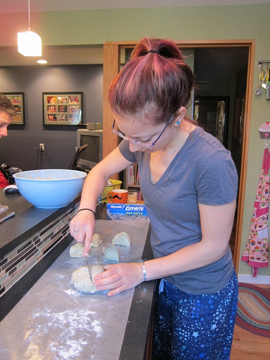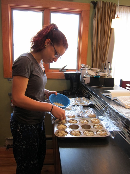 My friend Catie loves to bake, and makes tons of healthy baked goods, but has always been scared of baking with yeast. I like baking, including with yeast, but maybe sort of hate healthy things a bit. So for Christmas this year, I got her a book neither of us would like, Healthy Bread in Five Minutes a Day, and then went to visit her in Michigan at the end of January to bake something from the book with her. The rolls were a success, and hopefully the start of lots more yeast baking!