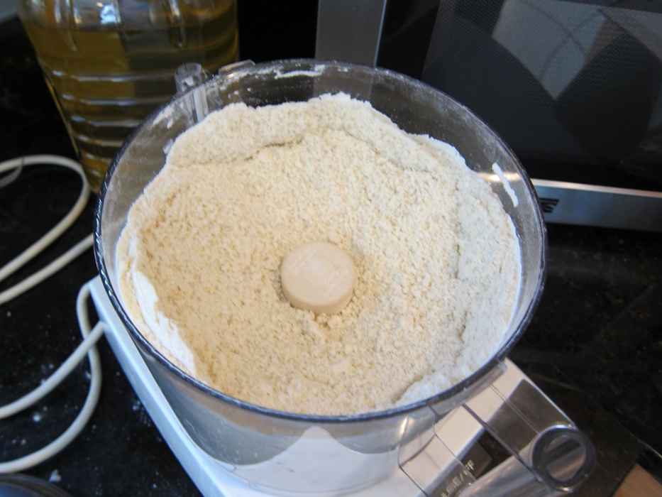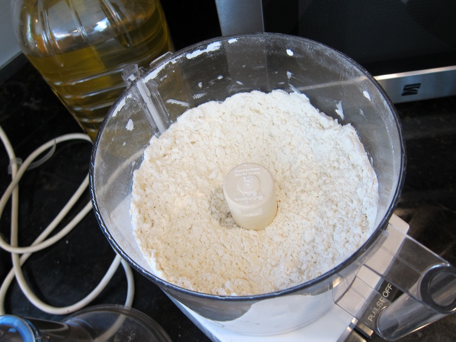 Combine the flour, salt, and baking soda in a food processor and pulse briefly. Add the butter and pulse until coarse and crumbly. To speed things along, I cut the butter into roughly 1/2 tablespoon chunks, but don’t bother getting too finicky about it, since the food processor cuts way faster than you do.