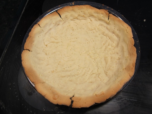 Place the pie pan up-side-down over the uncovered dough, then flip the wax paper, dough, and pie pan right-side-up. Remove the paper, straighten the dough, and prick all over with a fork, before returning to the freezer while the oven preheats and baking as above. I found this method much trickier. The dough got more evenly flat, but then tried to move all over while being flipped. And don’t even ask about moving the dough without putting the pie pan over it first! Yikes.