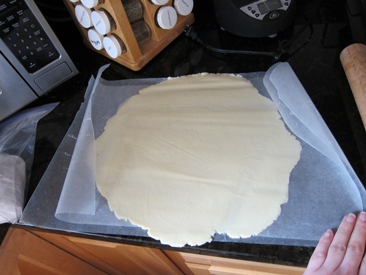 To use the prepared dough later, form each half into a disk about 1/2″ thick, wrap in plastic, place in a freezer bag, and freeze. When ready to use, thaw for 1 1/2 hours at room temperature, then roll out to a 10″ round between two sheets of wax paper.