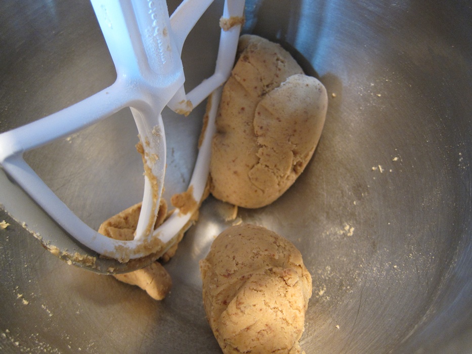 While the ice cream base refrigerates, prepare the cookie dough. In a small bowl stir together the flax and hot water. In a medium bowl, whisk together the flours, baking soda, and salt.