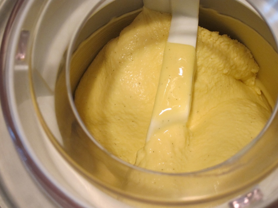 When the ice cream and dough are both properly chilled, freeze the ice cream according to your ice cream maker’s directions.