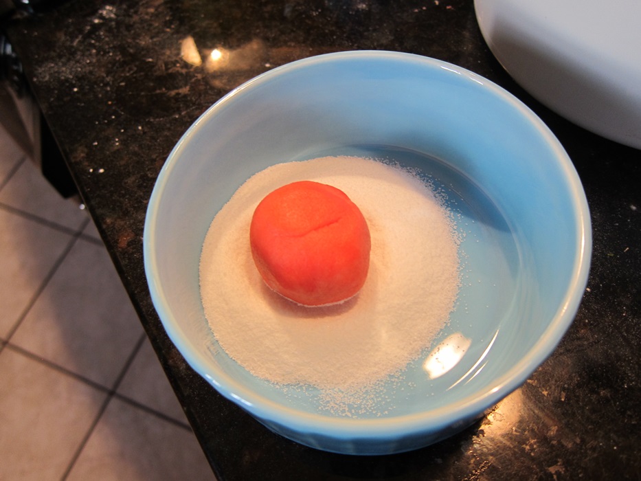 Roll the dough into 1″ balls, and roll the balls in the extra sugar.