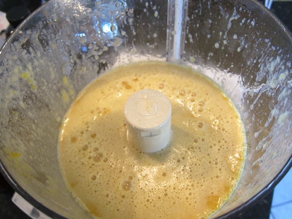 Combine the eggs, apple sauce, grapeseed oil, agave nectar, and vanilla in a food processor and pulse together.