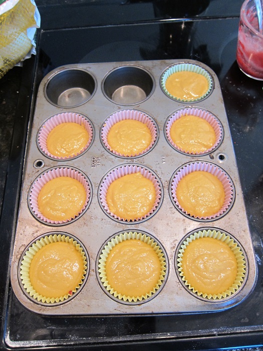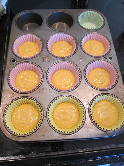 I wasn’t positive I’d get 10 out of this, so started of filling only 9 papers, but in the end had enough batter for 10 cupcakes.