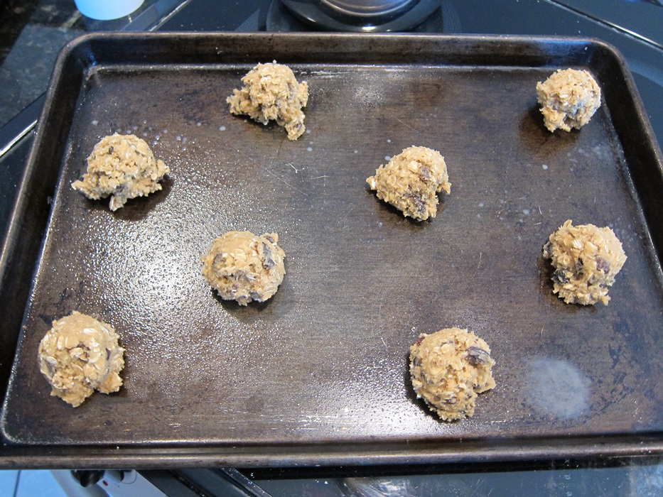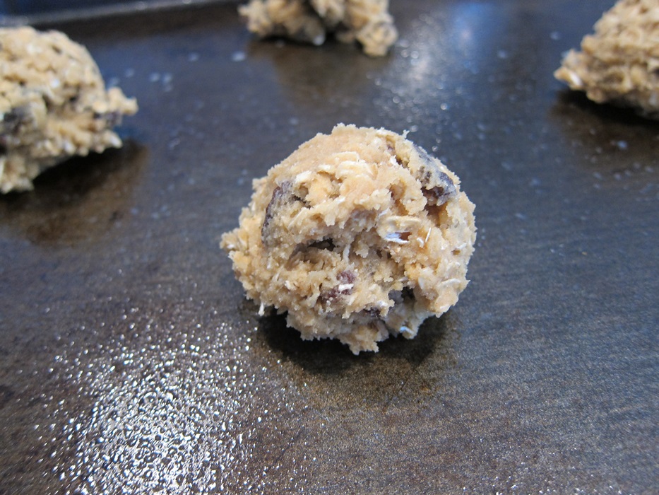 Scoop onto the greased sheets in 2 tablespoon balls, spacing them 2″ apart.