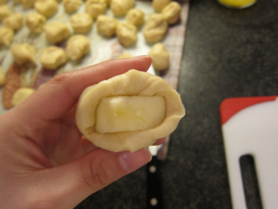 IMG_5698Wrap each piece of dough around a piece of apple, pressing closed to seal.