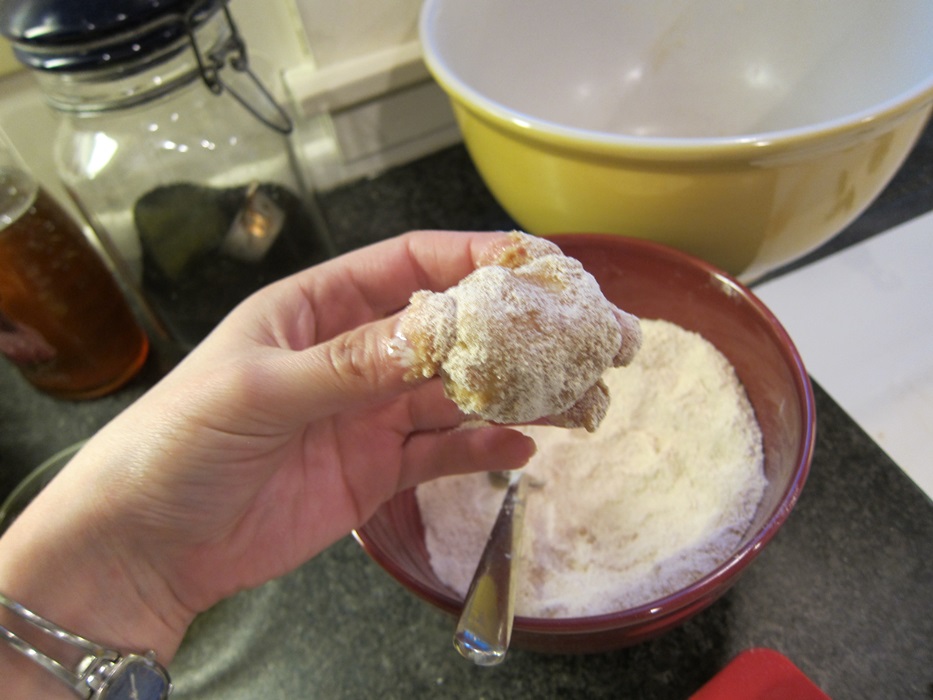 IMG_5699IMG_5700Dip each piece of dough in the melted butter, then roll it in the sugar/flour/cinnamon mixture.