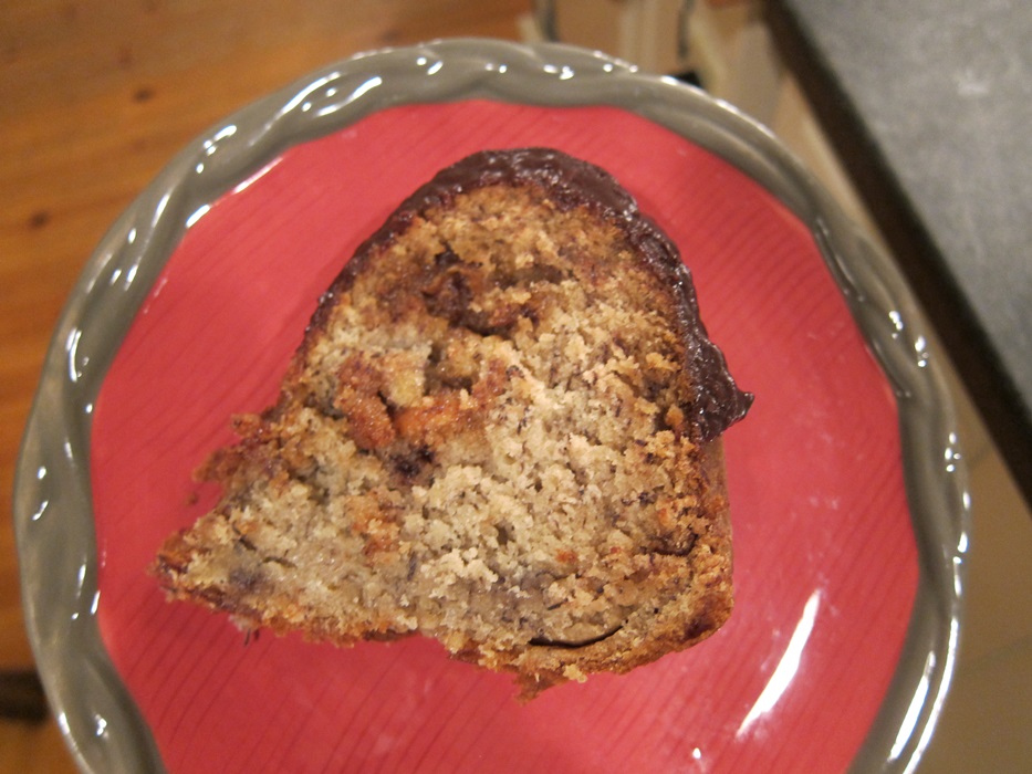 A flavor combination that I decided recently makes tons of sense to me, Butterfingers and bananas. My only complaint is I should have doubled the amount of Butterfingers! (Which I have done in the recipe below, so don’t re-double. Or do? Who am I to stand in the way of progress?!) It’s a good, well-banana-flavored cake that stays moist for days and days, and the candy’s a super addition.