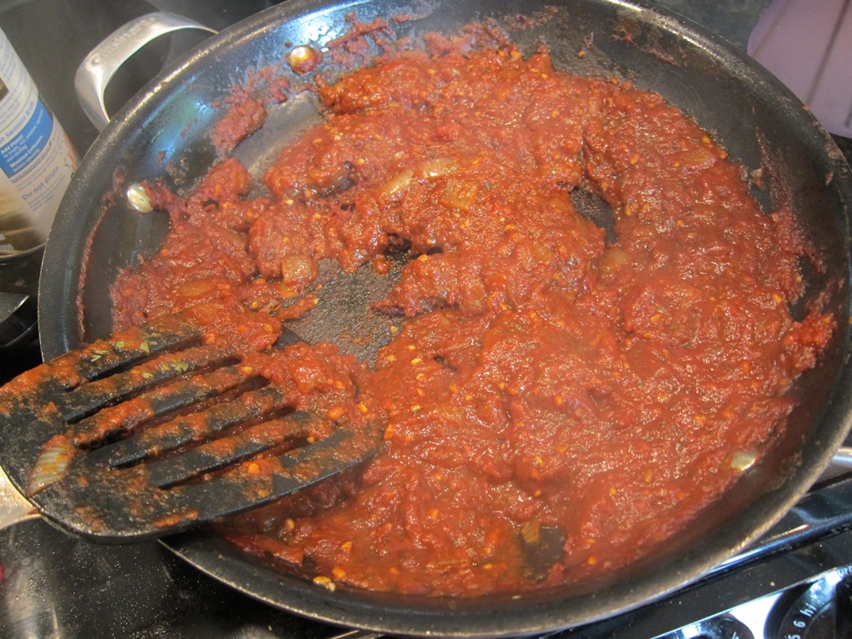 By the time the quinoa is cooked, the tomato mixture should be somewhat thickened.