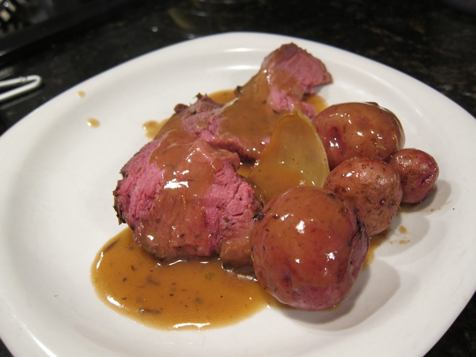 This was a perfectly textured rare roast. If you like your meat more well done, cook to 140 for medium, or 150 for medium well. This recipe made more gravy than we needed for our 2 pound roast, but the gravy is great, and well worth saving for some potatoes or something later.