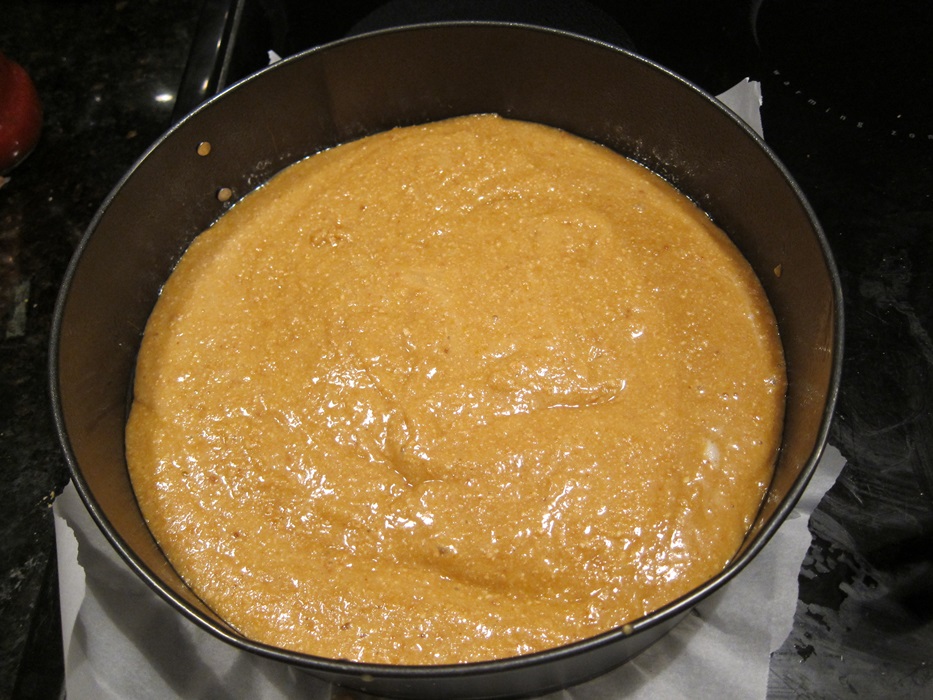 Preheat your oven to 350 degrees. Line the bottom of a springform with parchment, then grease.