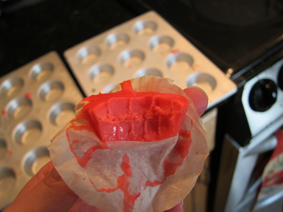 Once frozen, you can pop these out of the tins and store them in a plastic bag. Top with whipped cream, if desired, although I like just eating the mini-cupcake sized ones in a few bites straight from the freezer, without any fiddling around in the fridge.