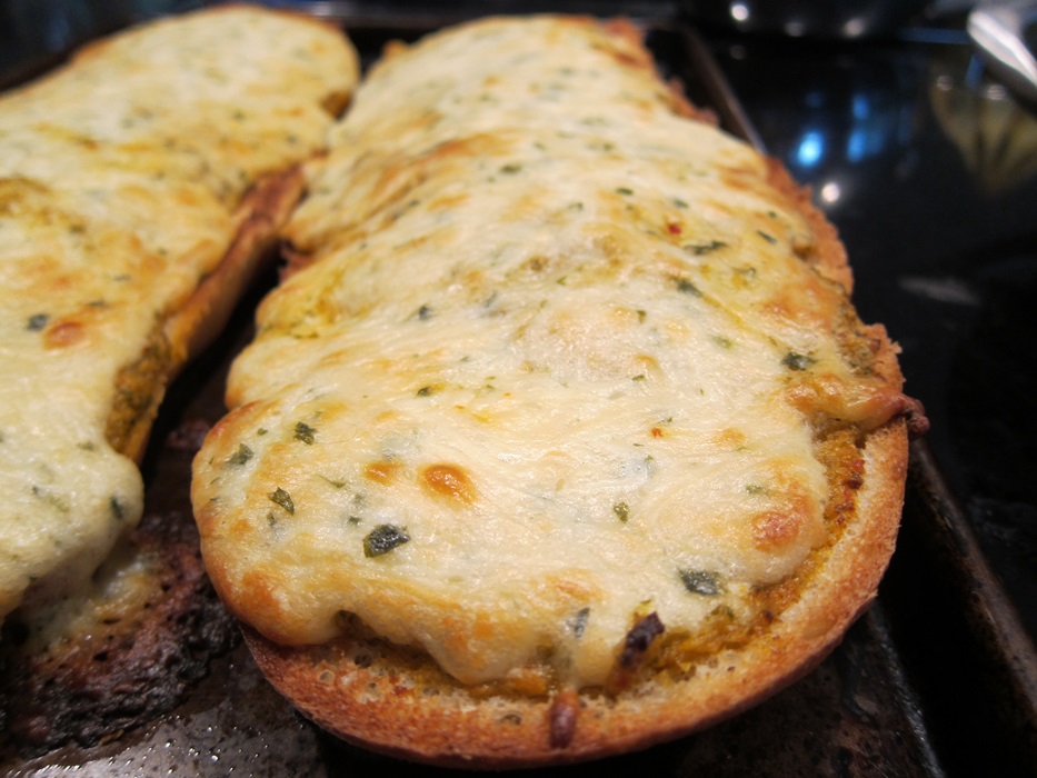 So this is a recipe that sounds potentially gross, or at least highly smelly, but turns out to be really tasty. It comes out tasting somewhere between garlic bread, French bread pizza, and Korean food, which turns out to be a fine place to be.