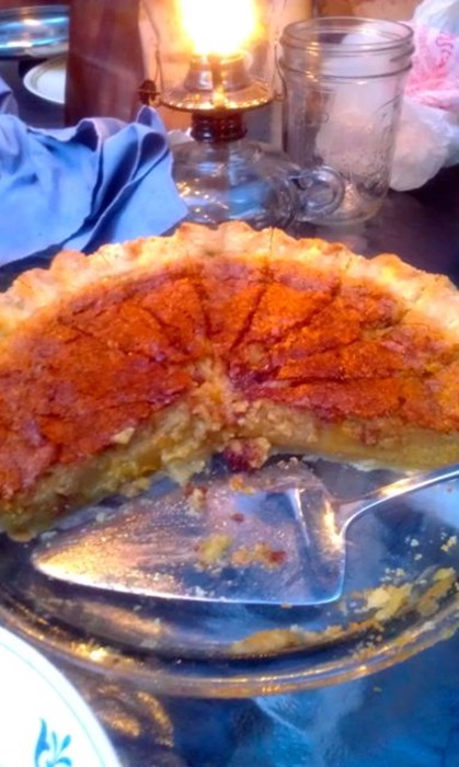 I dished this thing out at a potluck, and got a lot of positive feedback. The one surprising thing was how very boozy it was—no use trying to pretend that stuff cooked out because it was definitely a whiskey pie.