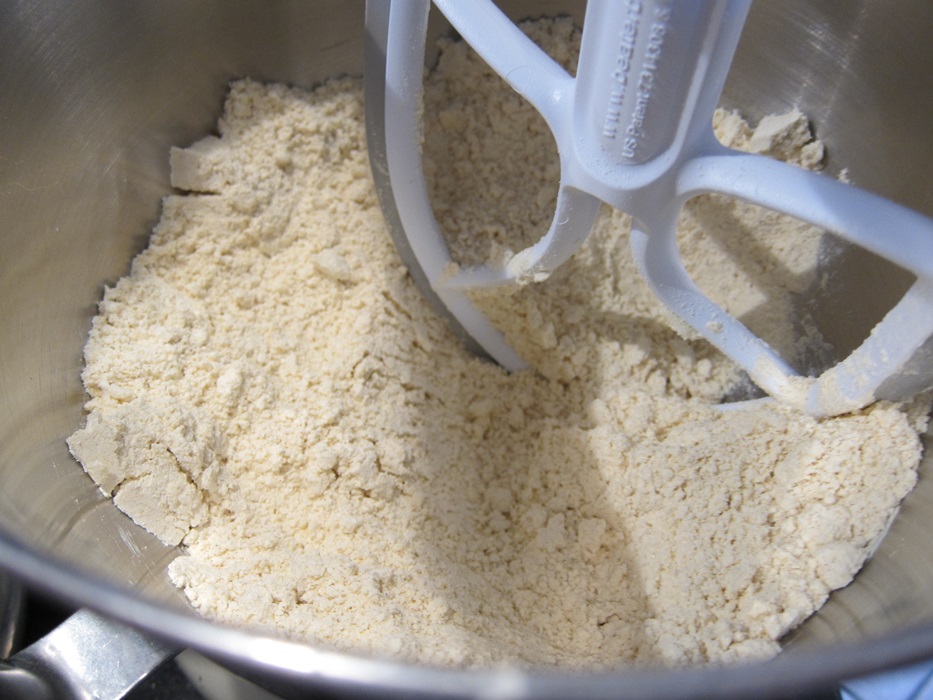 To make the dough, combine all the dry ingredients in a mixing bowl. Add the butter and blend on low until the mixture resembles coarse crumbs.