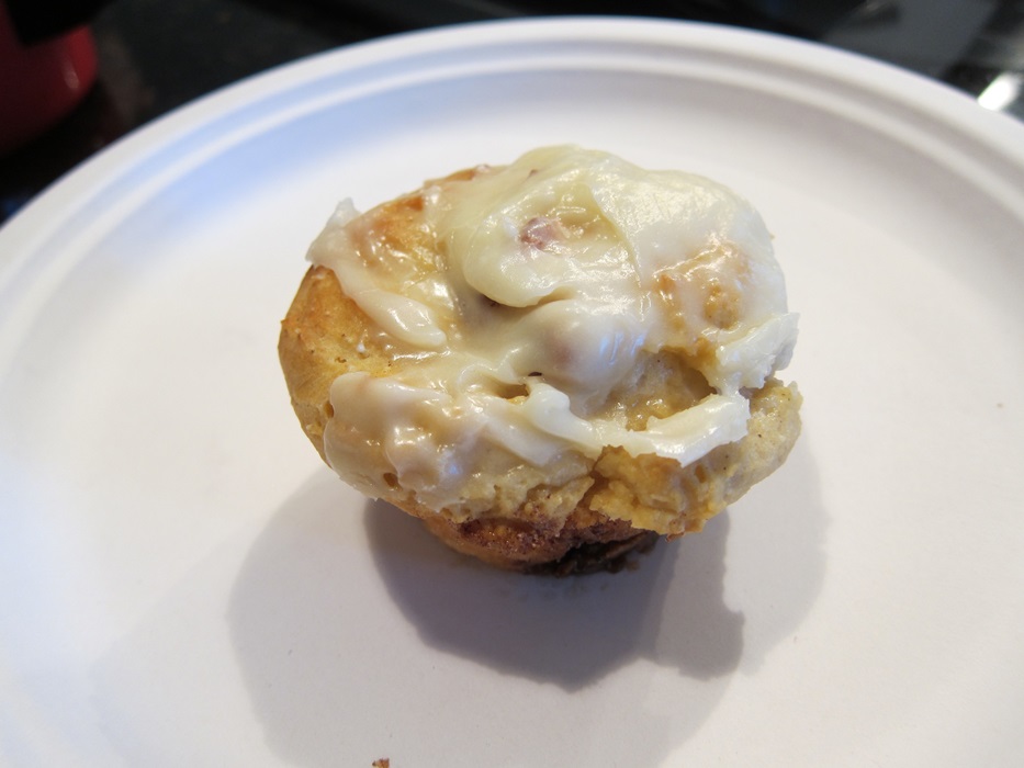 While the rolls bake, beat together the icing ingredients with a mixer until smooth. I thought at first that it would need extra liquid, but it blended into a good consistency.
