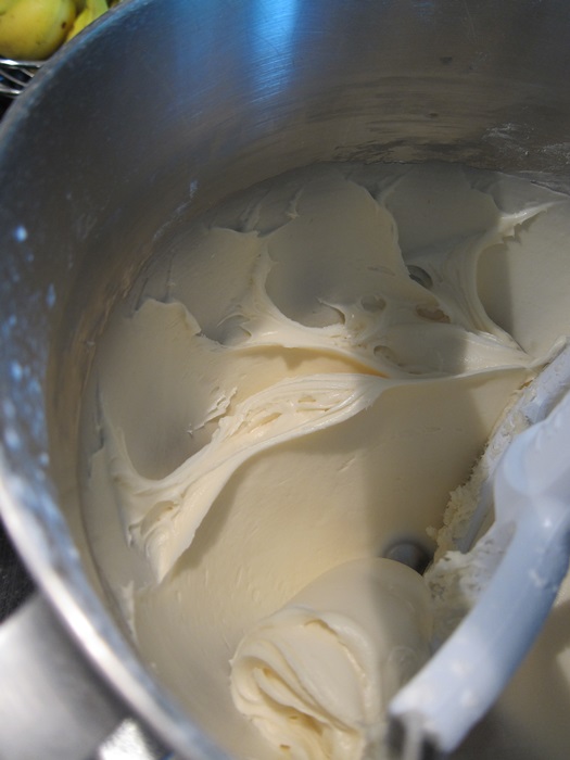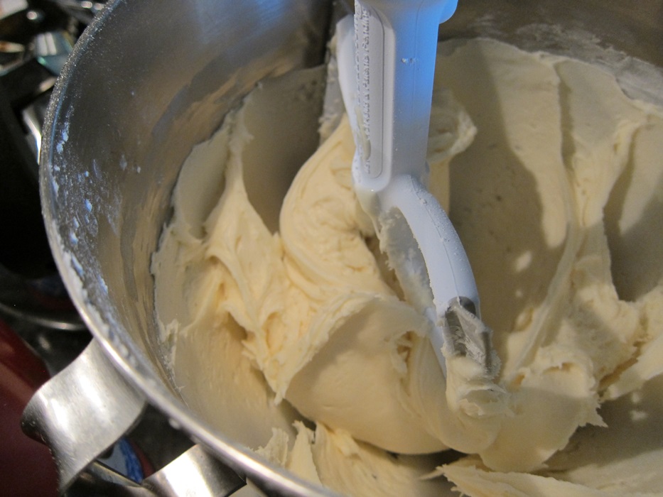 Beat together the cream cheese, powdered sugar, and vanilla until smooth with a stand mixer.