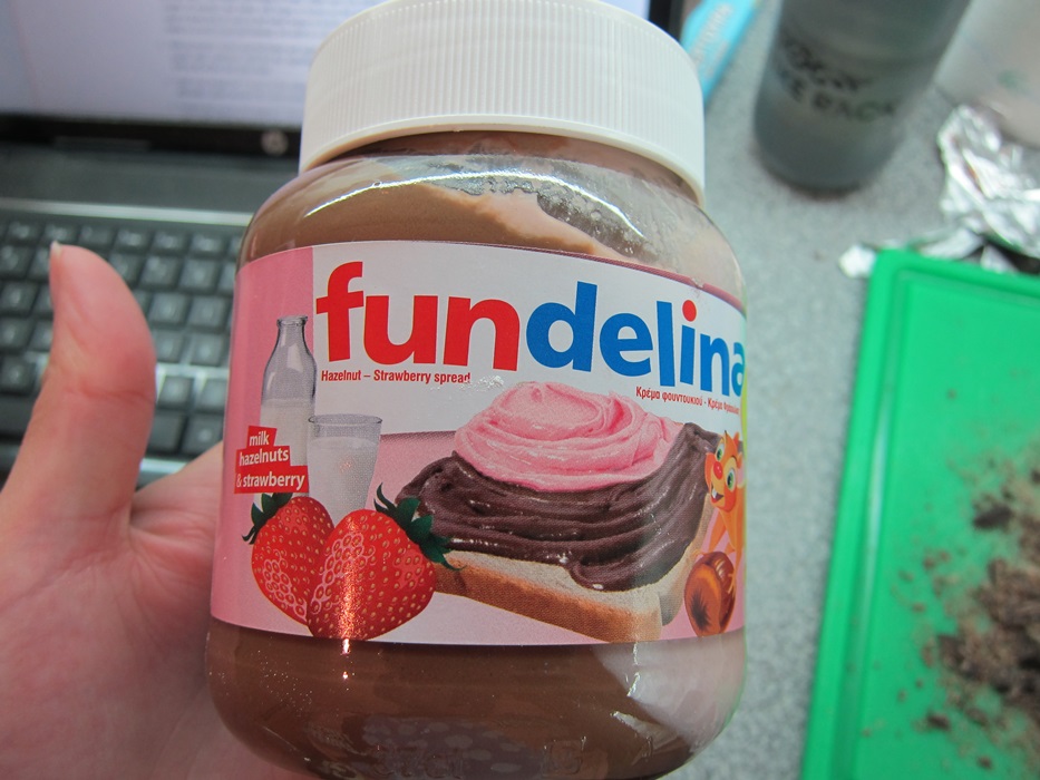 A few days ago I bought this chocolate hazelnut/strawberry spread for some reason, so I used that instead of regular Nutella, since I have to get rid of it somehow.
