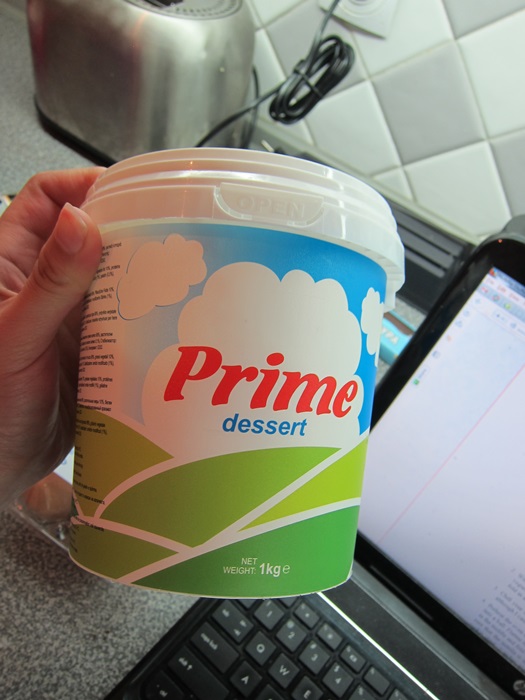 I didn’t have regular Greek yogurt, but I do have this… I don’t even know, it’s Greek, and it’s dairy, but it’s extra firm (got gelatine in it to make sure) and I kind of hate it? But I bought it (the only big thing of flavored yogurt at the store that day was already opened), and you only need a tablespoon of Greek yogurt for this recipe, so it’s good enough. The rest, I’ve been mixing with sugar and jam in an attempt to make it edible, as it’s too much to just throw out.