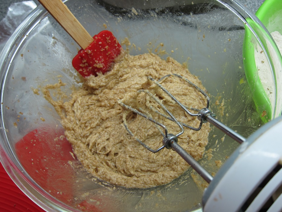 Preheat the oven to 350 degrees. Grease a 9″ springform. Whisk together the flour, baking powder, cinnamon, baking soda, and salt, and set aside.