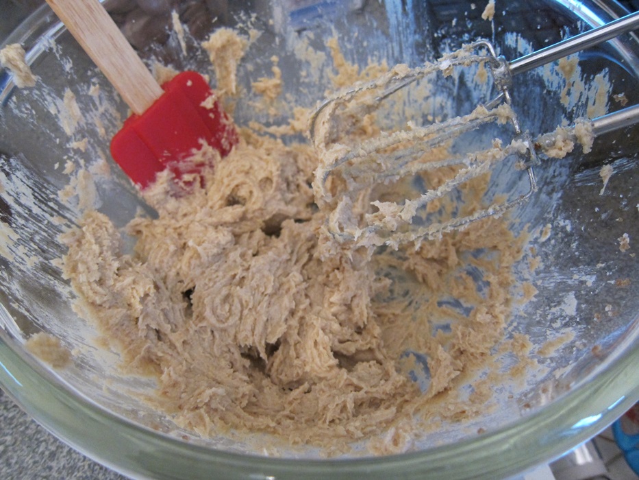 Cream the butter and sugars until light and fluffy, then beat in the cream cheese and vanilla. Beat in the flour mixture, then stir in the chocolate chips.