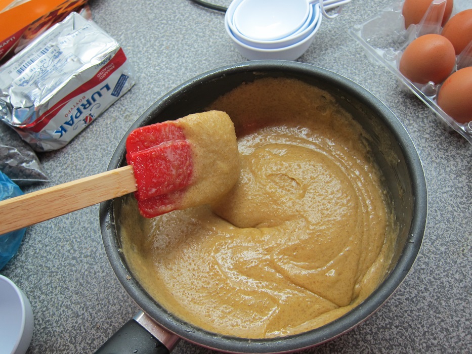 Beat in the vanilla, egg, and yolk until light and creamy. This would have been easier with a mixer, but since it was the only exercise I got all day, I suppose I shouldn’t complain. The color did become noticeably lighter after enough beating.