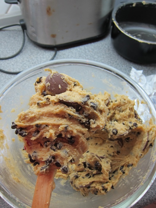 Mix in the flour mixture until just combined, then stir in the chocolate chips.