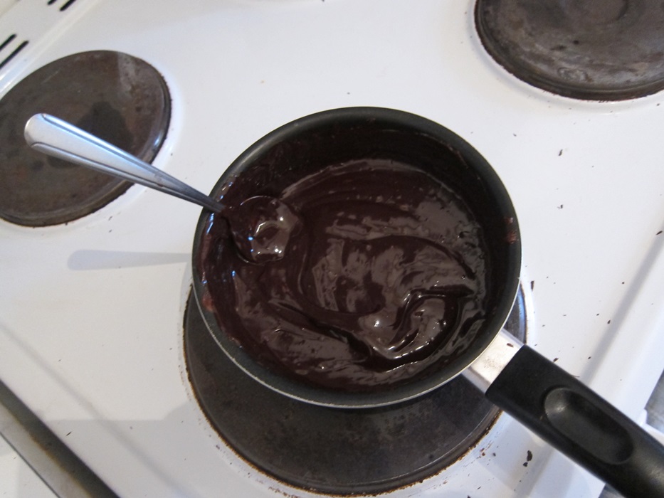 To make the filling, first combine the milk and chocolate in a small saucepan and melt over low heat. Stir constantly, until the mixture is smooth. Remove from the heat, stir in the espresso powder if desired, and set aside.