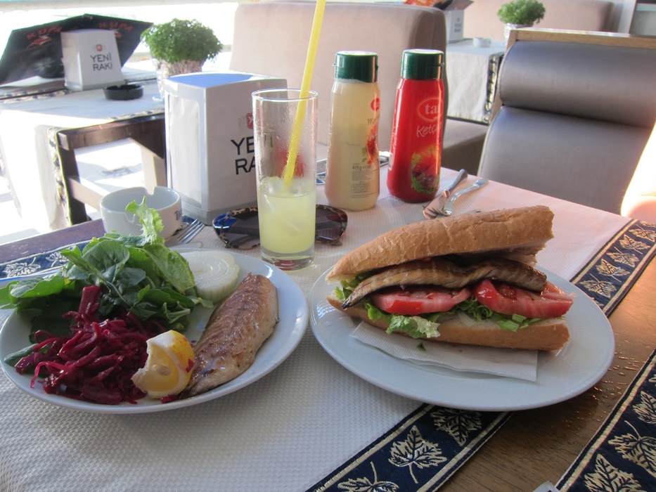Fish sandwiches under the Galata bridge are a ‘thing’ you’re supposed to try. (I don’t eat fish, though, these weren’t mine!)