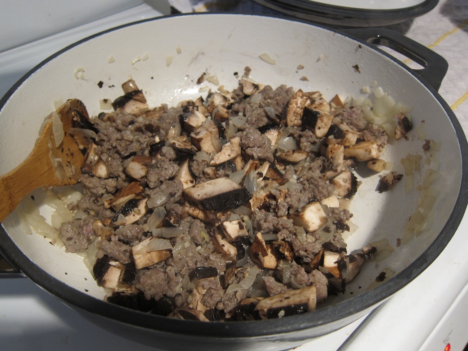 I was kind of not thrilled with the color of the polenta, as I think the mushrooms turn it a bit grey, but the chicken stock and sausage make sure that the taste is excellent, and one pot dishes are always much appreciated!