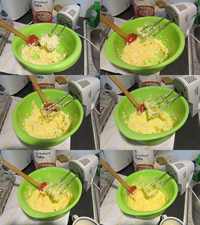Cream the butter and sugar until light yellow.