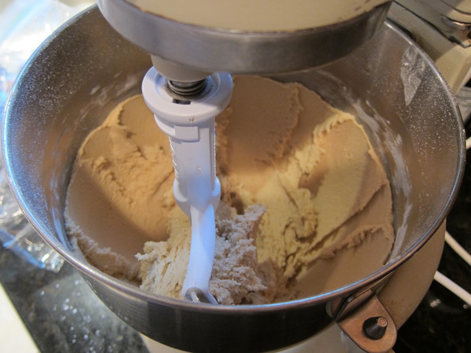 Scrape down the sides of the bowl, then add the flour, cornstarch, baking soda, and salt, and mix until just combined, about a minute.