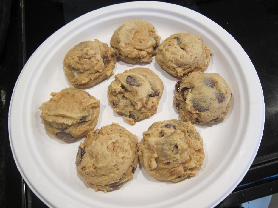 Using a 2″ cookie scoop, form heaping mounds of dough and place on a plate. Cover with plastic wrap, and refrigerate at least two hours, up to 5 days before baking.