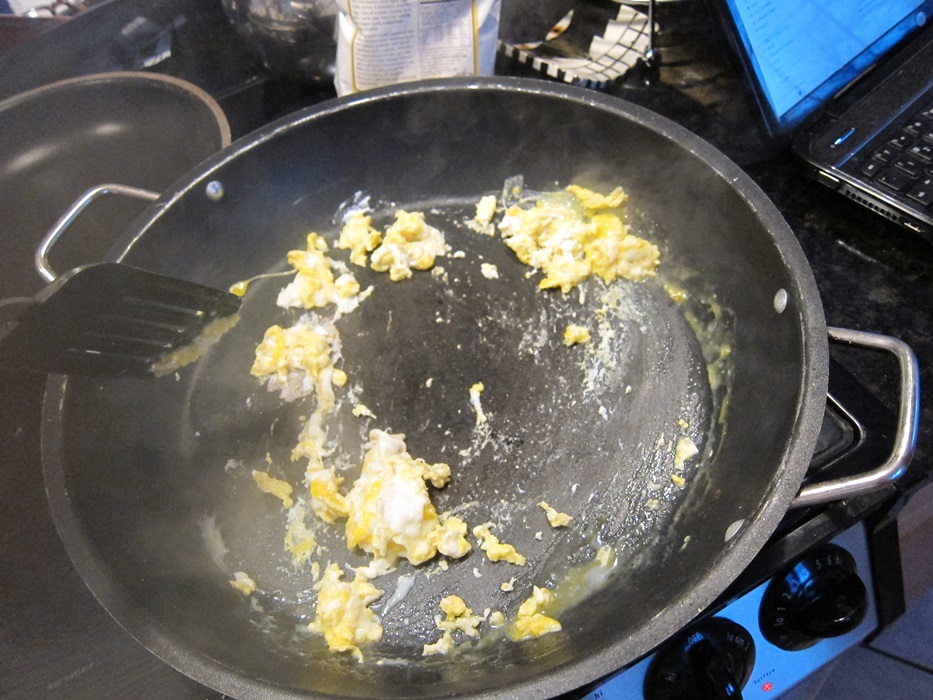 Add another tablespoon of oil to the pan, return the pan to the heat, and add half the pork, letting it cook undisturbed for 30 seconds. Stir, and continue to cook until cooked through, about 3 minutes, then transfer to the bowl with the eggs. Repeat with another tablespoon of oil and the other half of the pork.