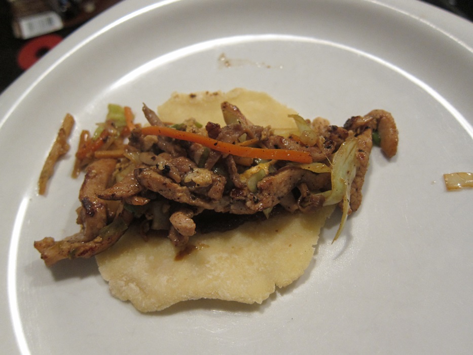 The method for making the pancakes seems a bit weird, but they wrap well, and taste just right – it’s really a great dish, and worth the effort!