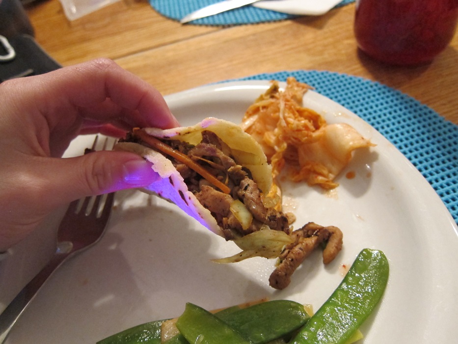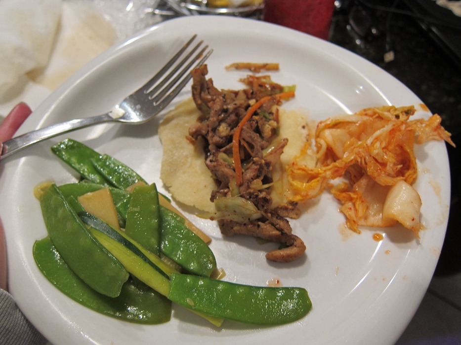 We also had some quickly stir fried veggies and some kimchi (wrong culture!) on the side.