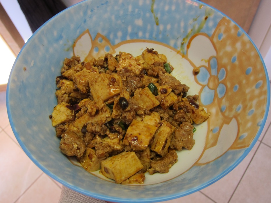 This was a dish I’d never heard of, that I ran across while looking for something to do with ground pork. I’m generally sort of hesitant about tofu things (it’s so…squishy!), but I quite liked the flavor of this sauce, and enjoyed the dish! It’s spicy, salty, and pretty delicious, and was something I could get cooked after work but before dying of hunger.