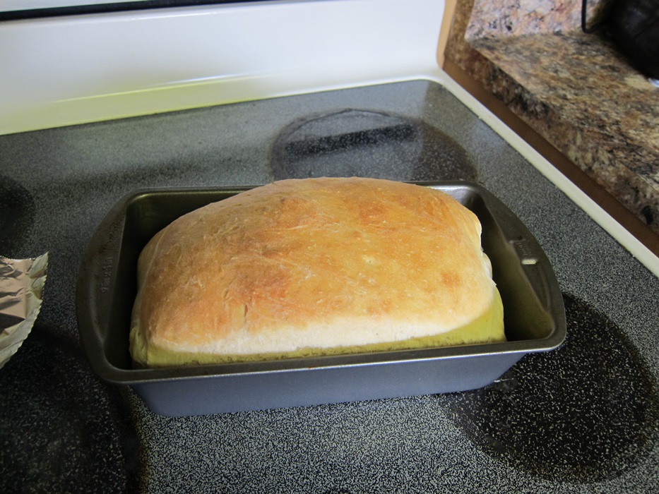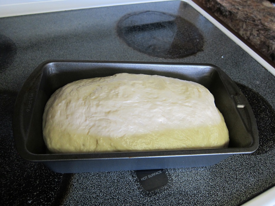 Grease a 9X5″ bread pan. Gently knock down the risen dough and shape it into a 9″ log. Place in the greased pan, cover, and allow to rise 60-90 minutes, until it has risen 1″-1 1/2″ inches over the edge of the pan.