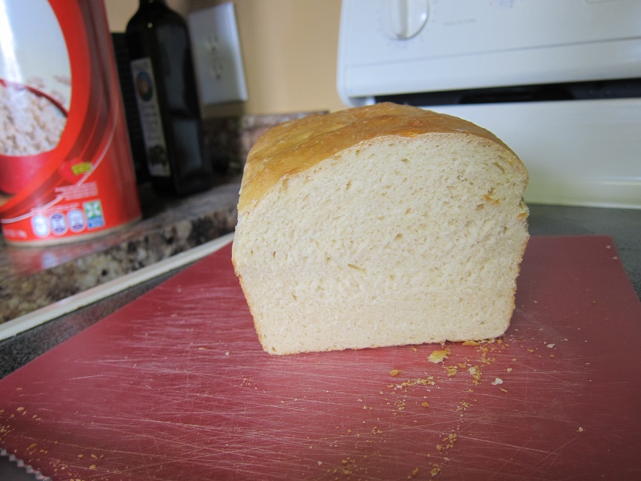 Preheat oven to 350 degrees, then bake 20 minutes. Loosely tent the bread with a piece of tinfoil and cook another 15-20 minutes, until golden brown. When you tip the bread out of the pan, it should sound hollow when tapped on the bottom. Cool completely on a wire rack, then store wrapped in plastic.