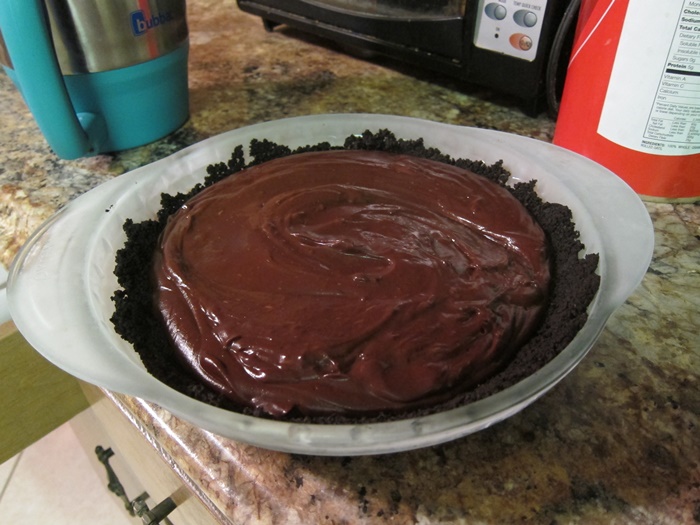 To make the crust, process the wafers in a food processor until finely ground. Add the melted chocolate and oil and continue to process until well blended. Press into the bottom and sides of a 9″ pie plate. Freeze 15 minutes, or until set.