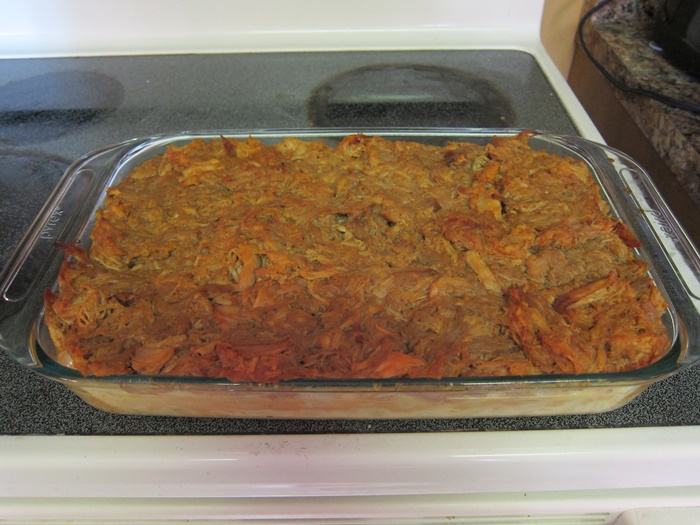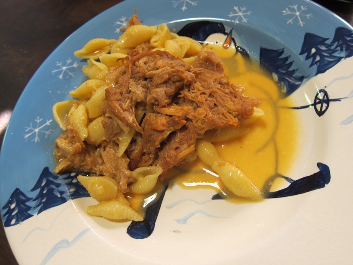 Where this takes a bit of time at the end to pull the pork and make the mac & cheese, I figured an easy/quick morning would be nice and used bottled bbq sauce, but if you have a favorite recipe from scratch, you could probably use it. Just keep in mind that a sweet bbq sauce goes better with the mac & cheese than a strongly vinegar or mustard-y one.