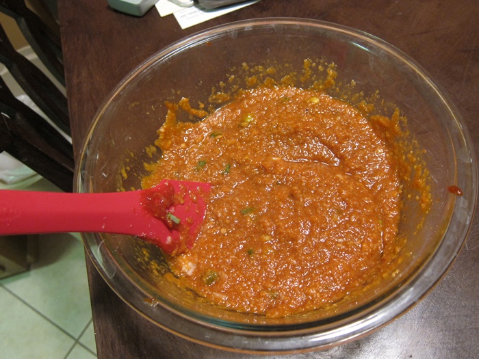 IMG_6349Combine the pear, onion, garlic, and ginger in a food processor or blender and puree until the consistency of apple sauce.